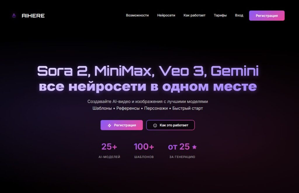 Обзор агрегатора AiHere — генерация видео и изображения через нейросети в РФ