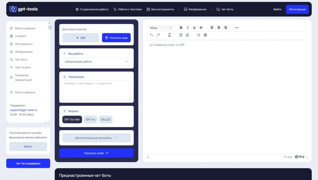 GPT-Tools — это платформа, которая объединяет множество AI-моделей для решения задач в одной системе. В обзоре рассмотрим ключевые возможности gpt tools нейросети, принципы работы, тарифные планы и практические варианты применения для маркетологов, копирайтеров и дизайнеров.