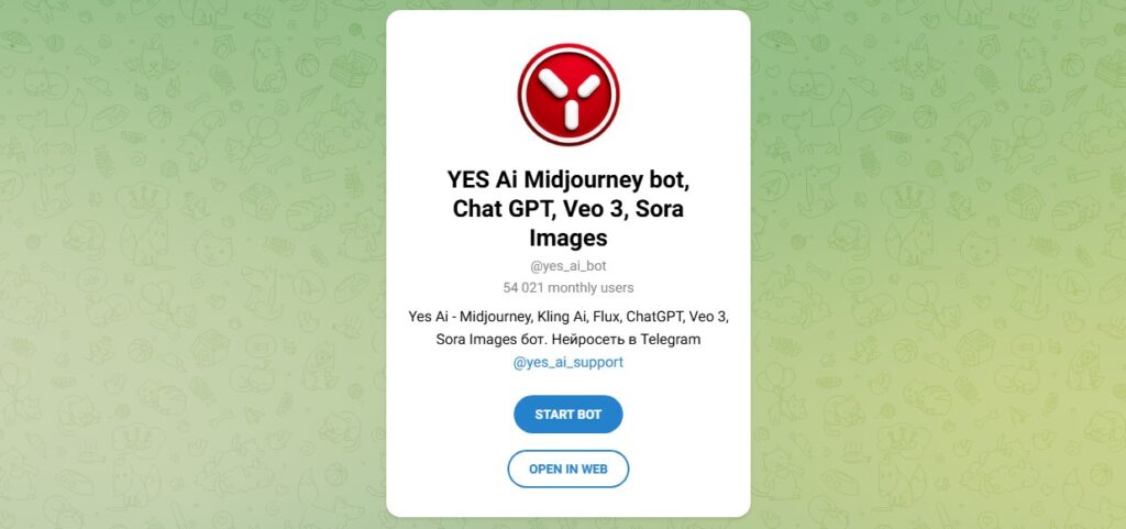 Yes AI – это набор функций для работы с текстом, изображениями и видео, собранный в одном месте через Telegram-бота. Плюс в том, что управление простое, а возможностей много. Минус – за большее количество запросов и расширенный функционал придется платить. Оплата удобная, включая карты и крипту, и сервис работает в России без VPN.