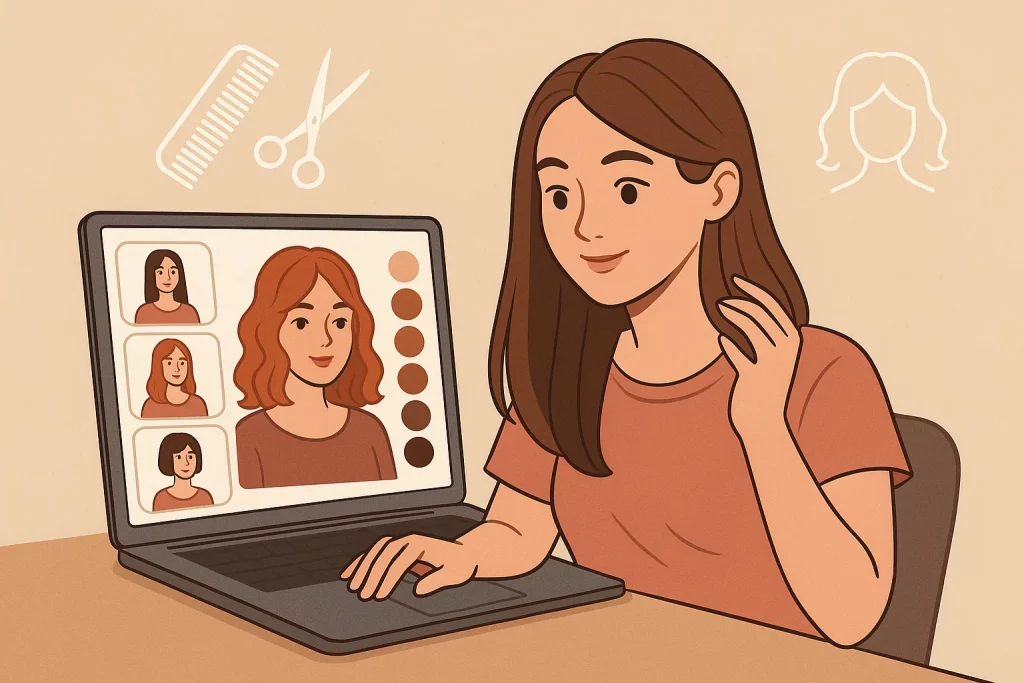 Но тут есть нюанс. Иногда онлайн-примерка слишком “красивая”: кажется, что вот он, идеальный образ, а в жизни повторить сложно. Картинка красивая, а потом в парикмахерской получается немного по-другому.