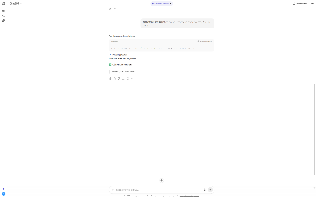 Раньше надо было быть чуть ли не радистом-профессионалом: запоминать комбинации, тренироваться различать эти точки и тире на слух. Сейчас же вся магия в паре кликов. Не нужно мучить память неделями, чтобы понять три заветные буквы. Скопировал непонятный код — вставил — и вот он, готовый ответ.