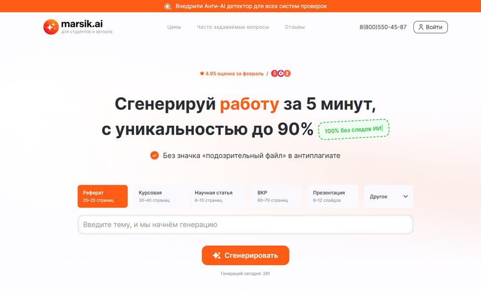2. Marsik AI: генератор учебных и научных работ